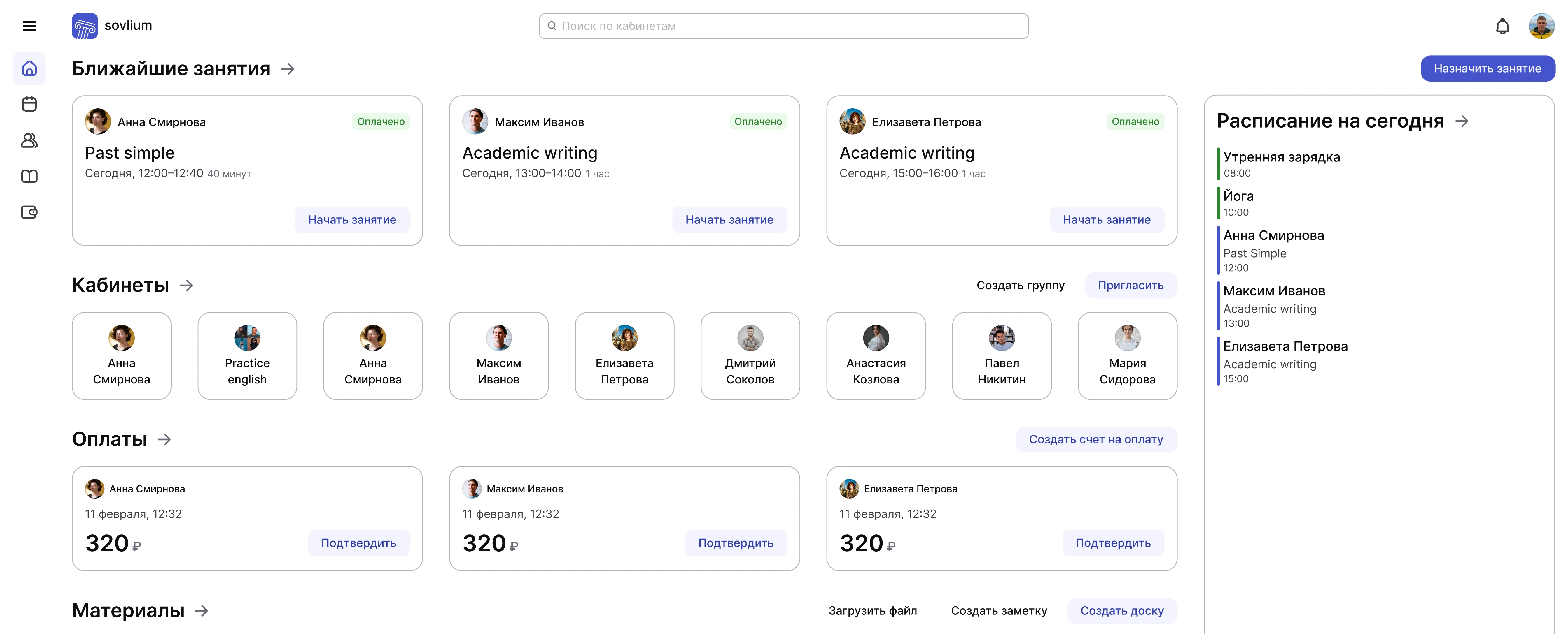 Поэтому мы создали sovlium — платформу для репетиторов, которая помогает оптимизировать процессы